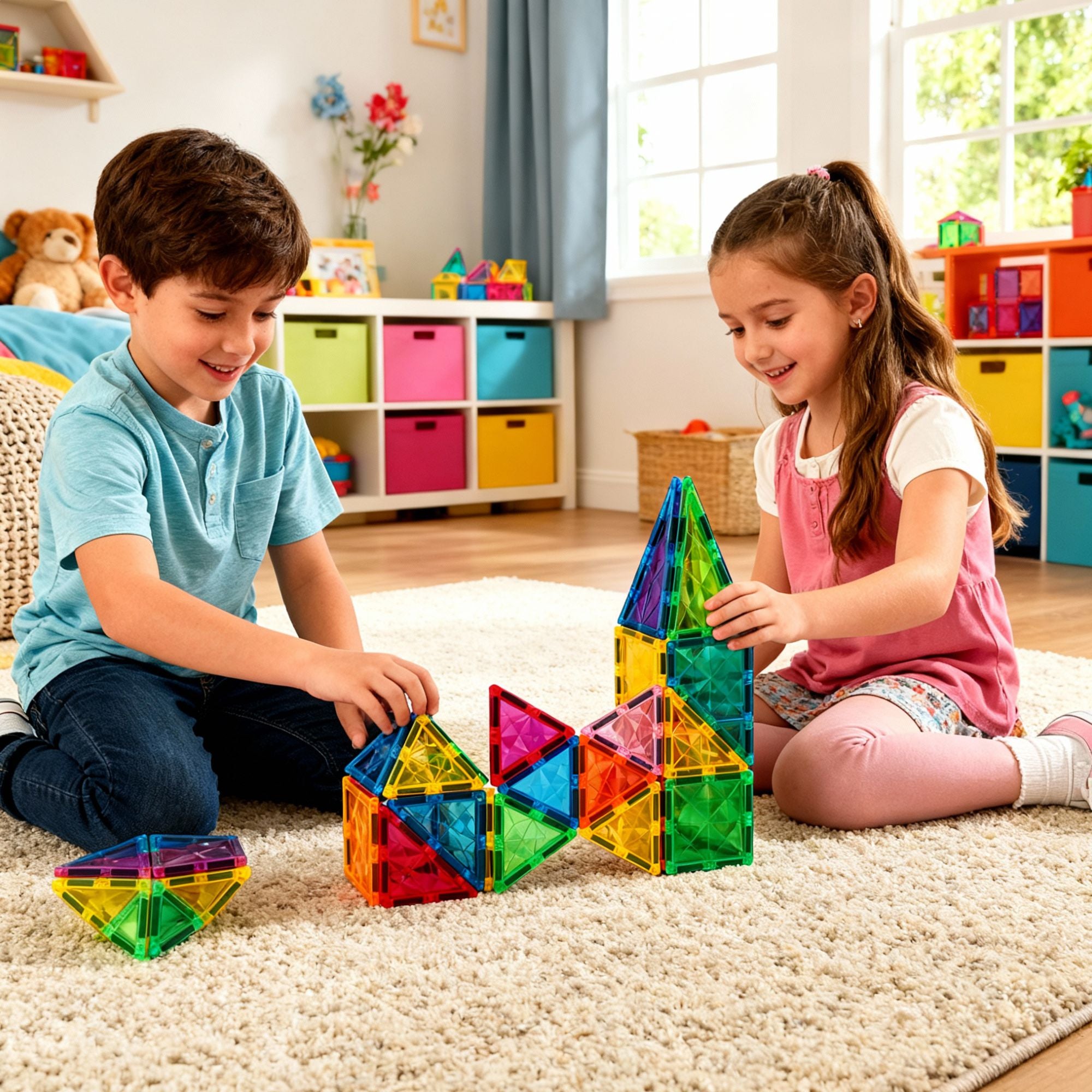 Magnetic Tiles spark creativity and curiosity! Kids can build anything they imagine — from rockets to rainbow castles — all while developing fine motor skills, problem-solving, and early STEM learning through play.